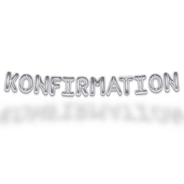 Ballongbanner med teksten Konfirmation. Hver bokstav er 35 cm høy.