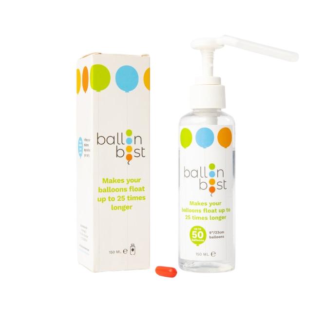 Balloonboost, (tilsvarende Hi-Float, Anyfloat, Flymore) ballongbehandling sørger for at latexballongene dine holder seg svevende med helium mye lengre.