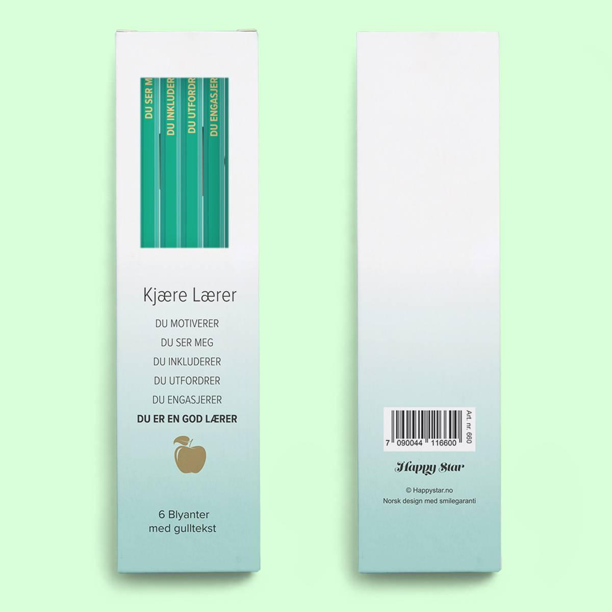 Pakken inneholder 6 HB gråblyanter med gulltekst.