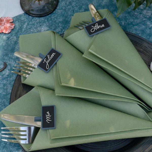 Kan legges på tallerkenen, og har en hvit treklype bak dersom man ønsker å feste dem på glass, servietter, silkebånd eller lignende.