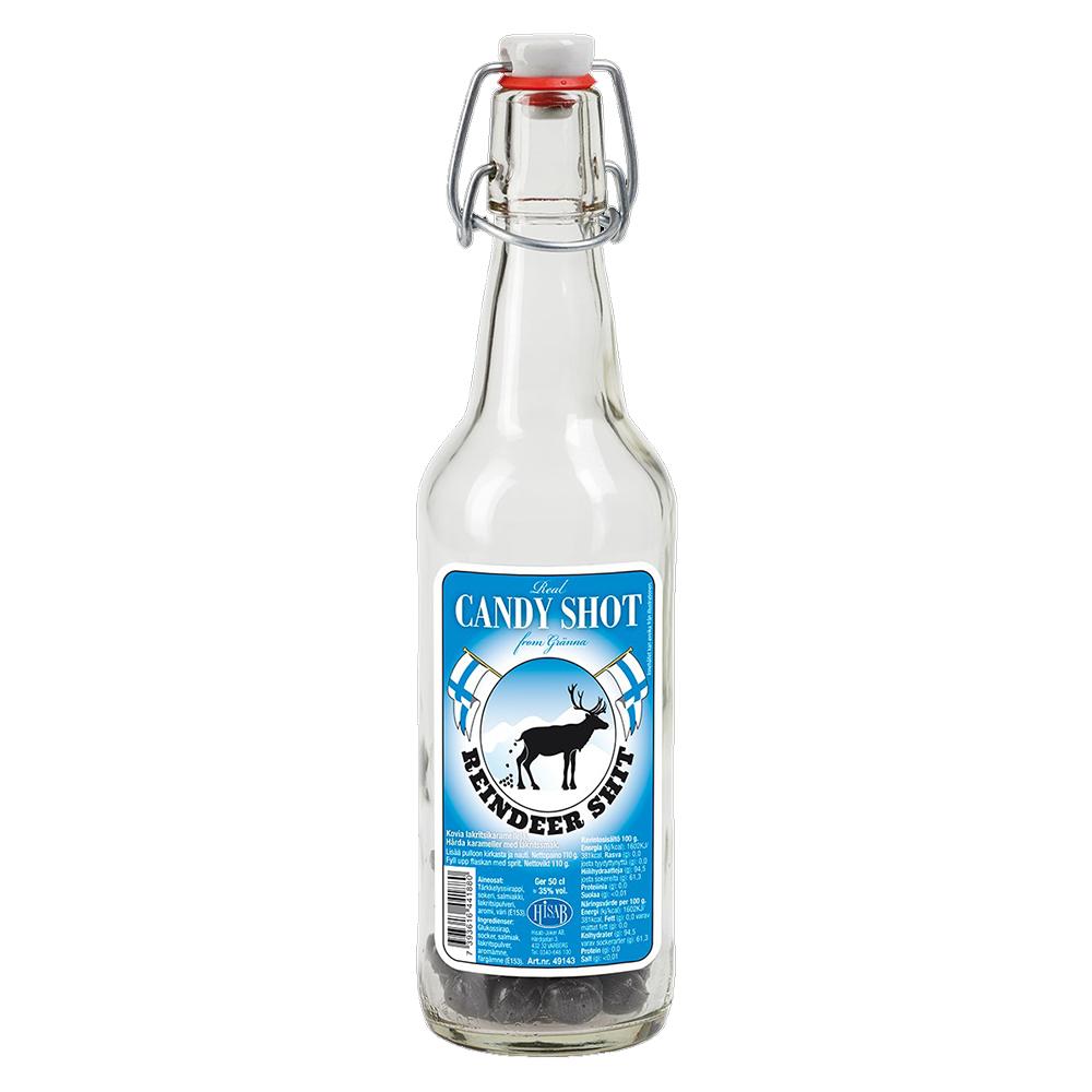 Pen glassflaske med ekte drops. Fylles opp med ønsket brennevin for å omgjøres til likør med smak.