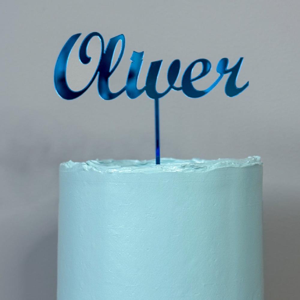 Kaketopp av speilakryl. Du velger selv hvilket navn du ønsker på kakepynten.