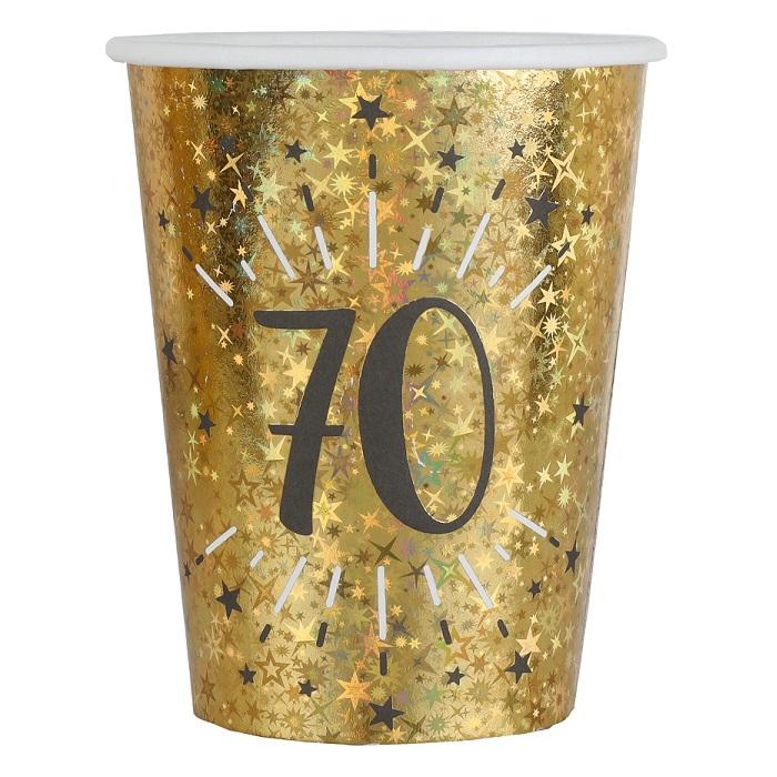 Pakke med 10 lekre pappkopper. Design med elegant gull med tallet 70.
