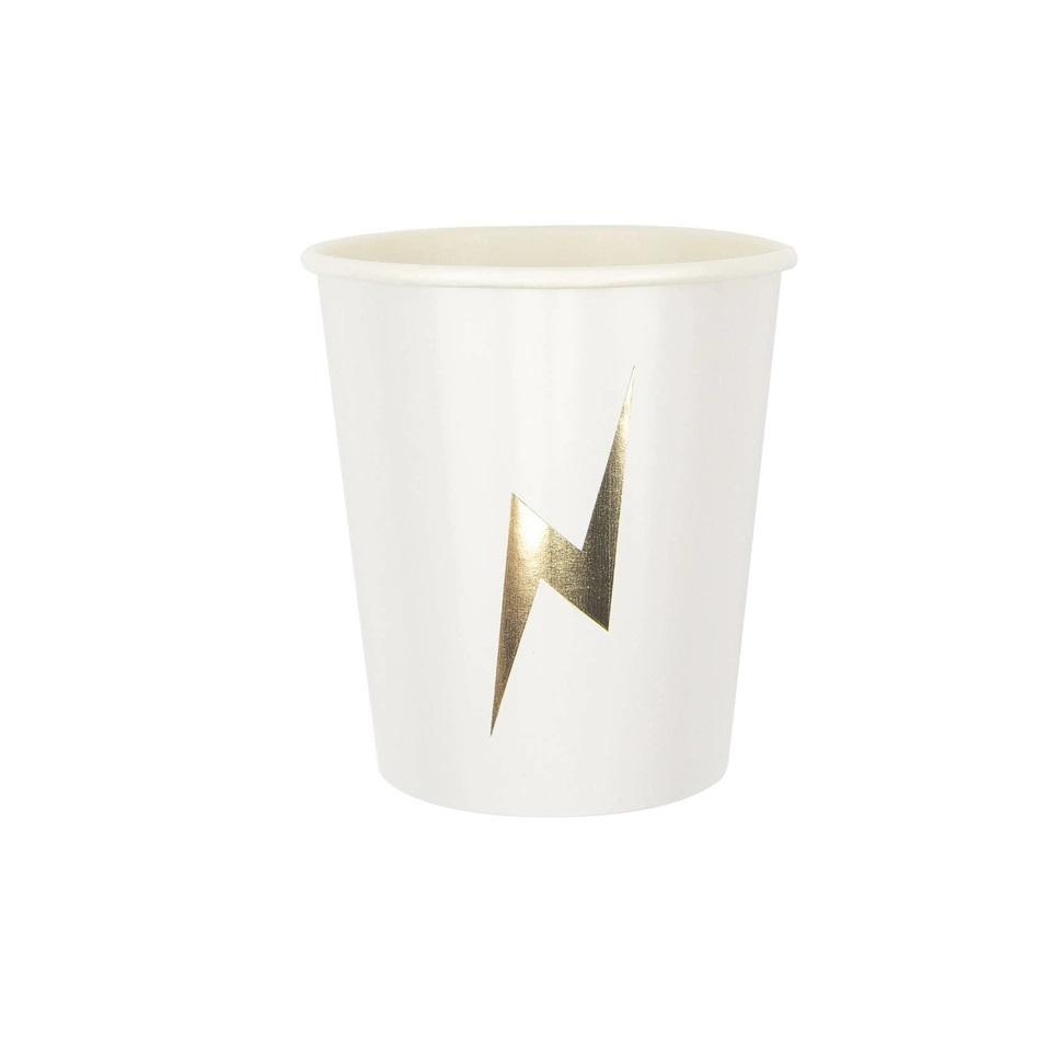 Pappkopper, Hvit med gull lyn – 8 stk