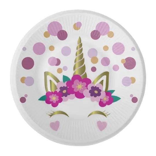 Papptallerkener 18cm, enhjørning blush – 8 stk