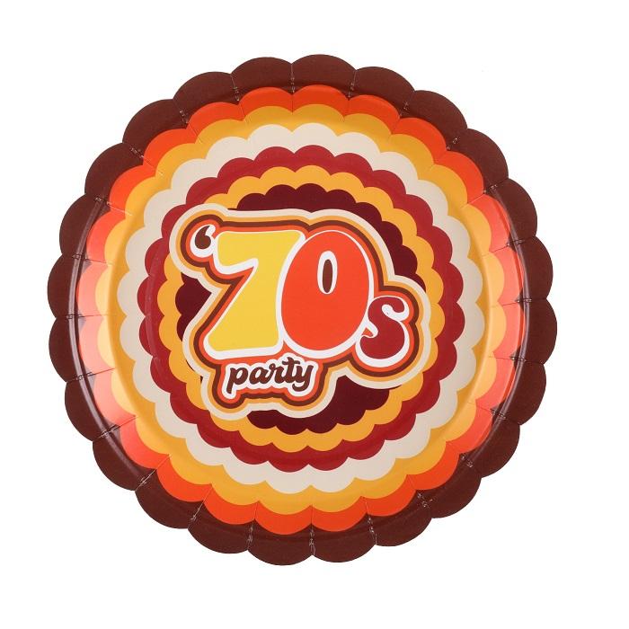 Tallerkener av papp, med 70s som tema.