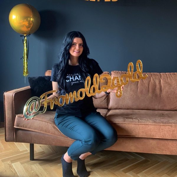 Elegant skilt av speilakryl. Du velger selv hvilket navn du ønsker på skiltet.