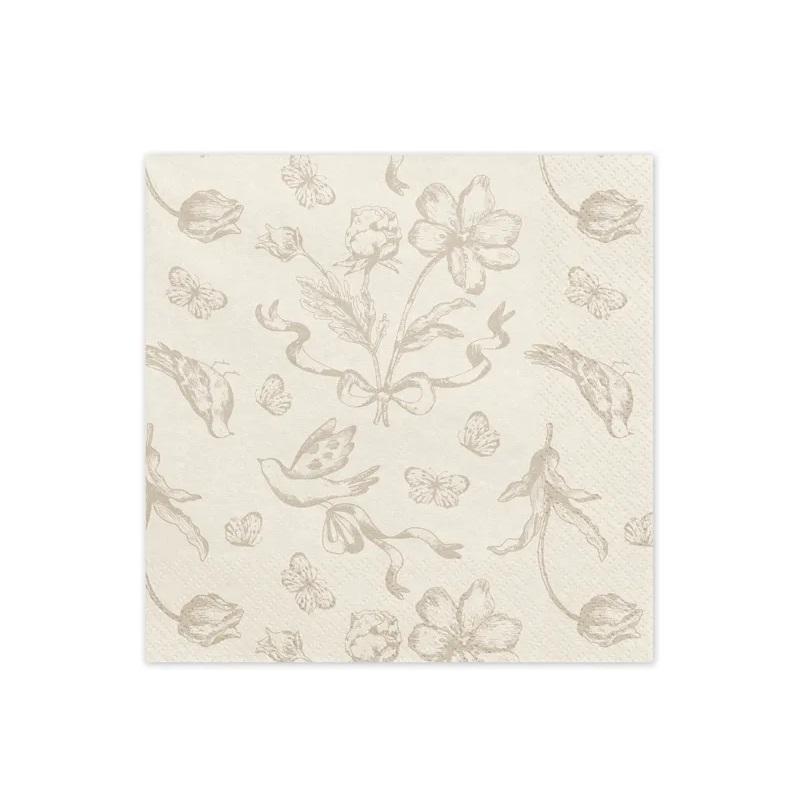Servietter lunsj, Dus beige med blomster – 12 stk