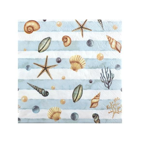 Pakke med 20 flotte servietter, med forskjellige skjell og sjøstjerner.