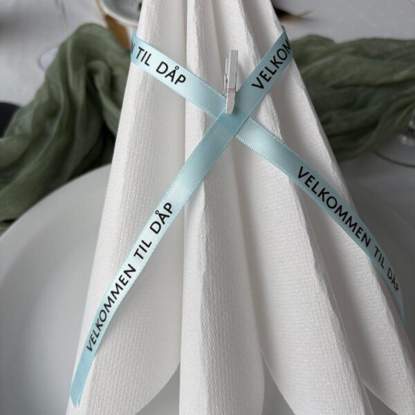 Pyntebånd til dåp. Pyntebånd har mange bruksområder og knytter dekoren sammen. Det kan for eksempel brukes rundt servietter, vaser, blomster, godteposer mm.
