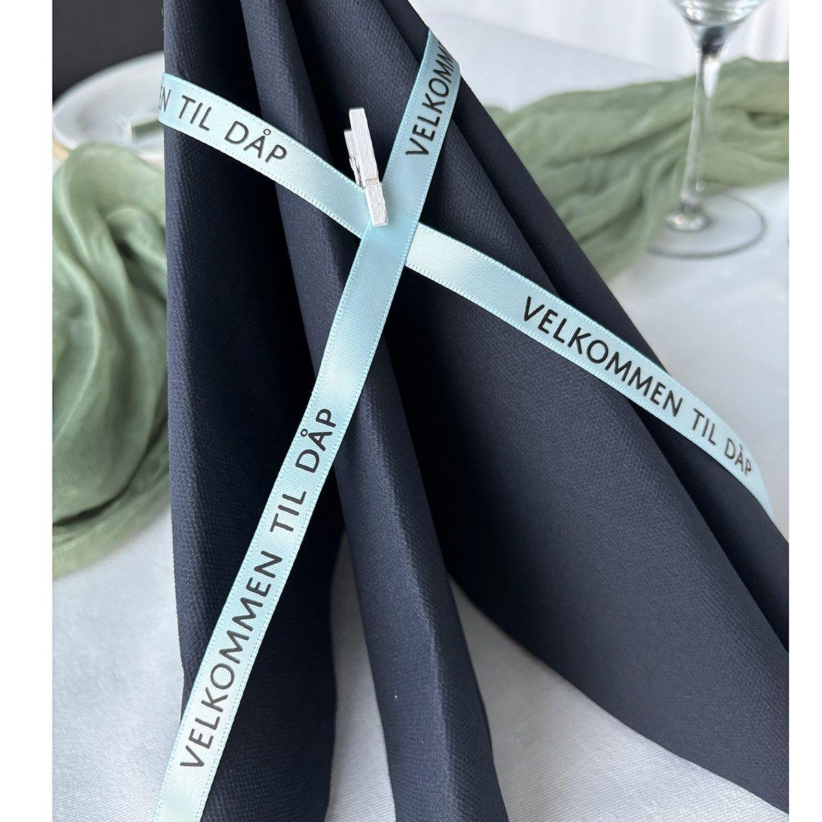 Tips: skal du bruke pyntebåndet rundt servietter anbefaler vi å bruke ca 53cm lengder. Da vil en pakke med 10 m være nok til 18 servietter.