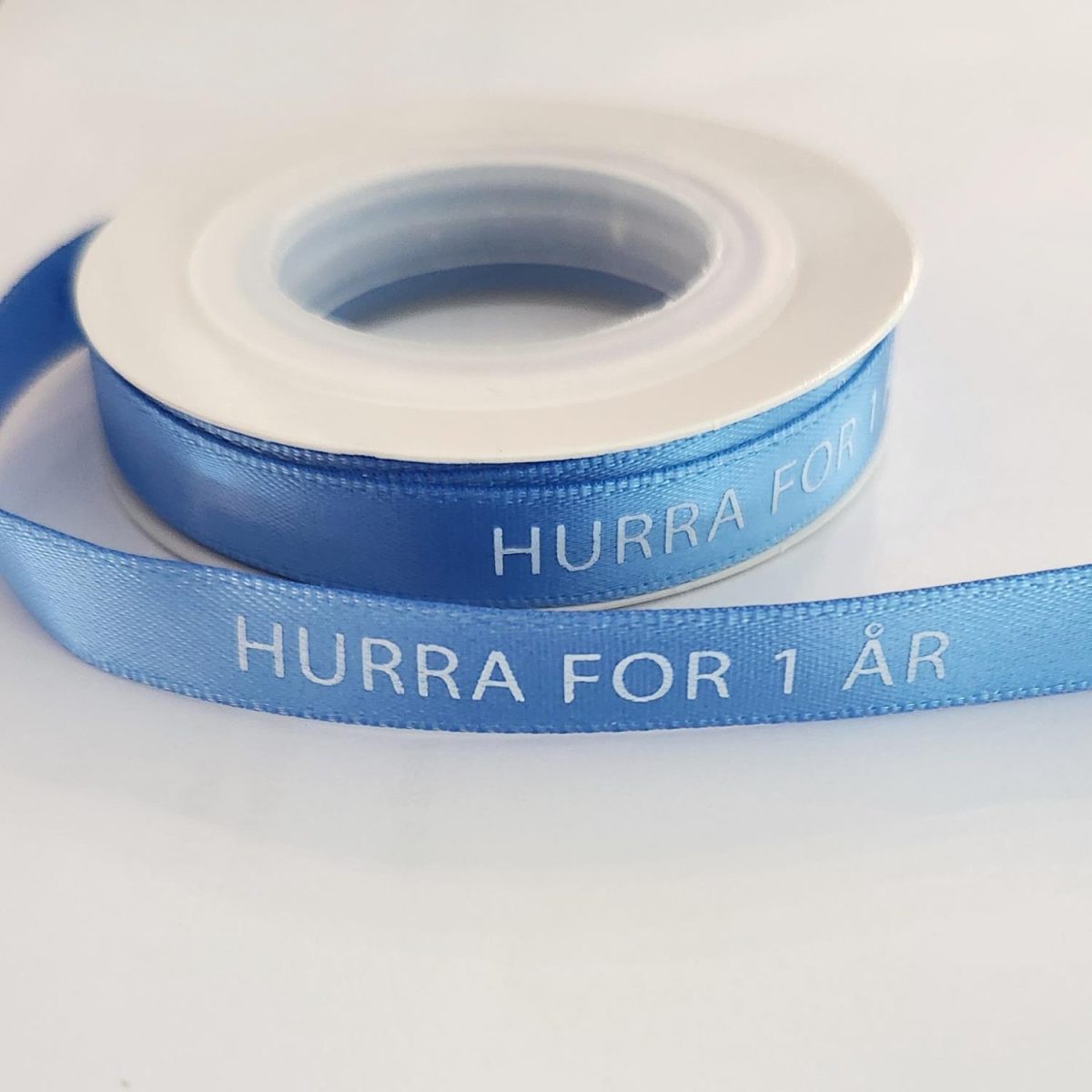 Silkebånd, dus blå – Hurra for 1 år – 10m