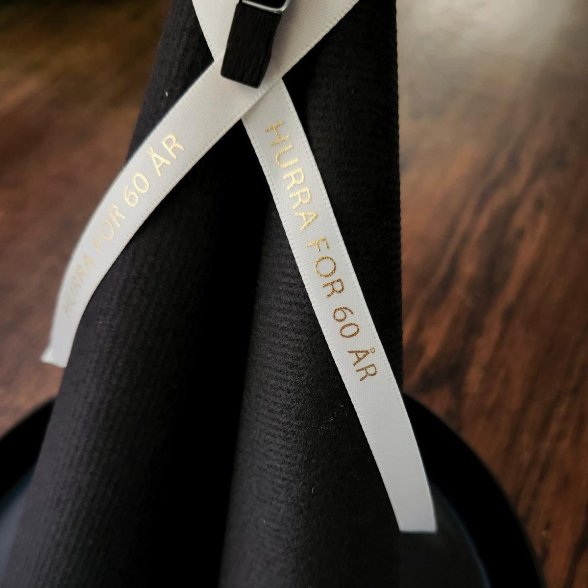 Tips: skal du bruke pyntebåndet rundt servietter anbefaler vi å bruke ca 53cm lengder. Da vil en pakke med 10 m være nok til 18 servietter.