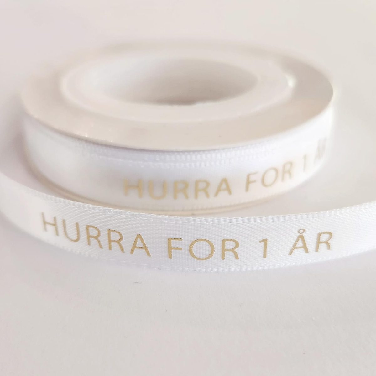 Silkebånd, hvitt – Hurra for 1 år – 10m