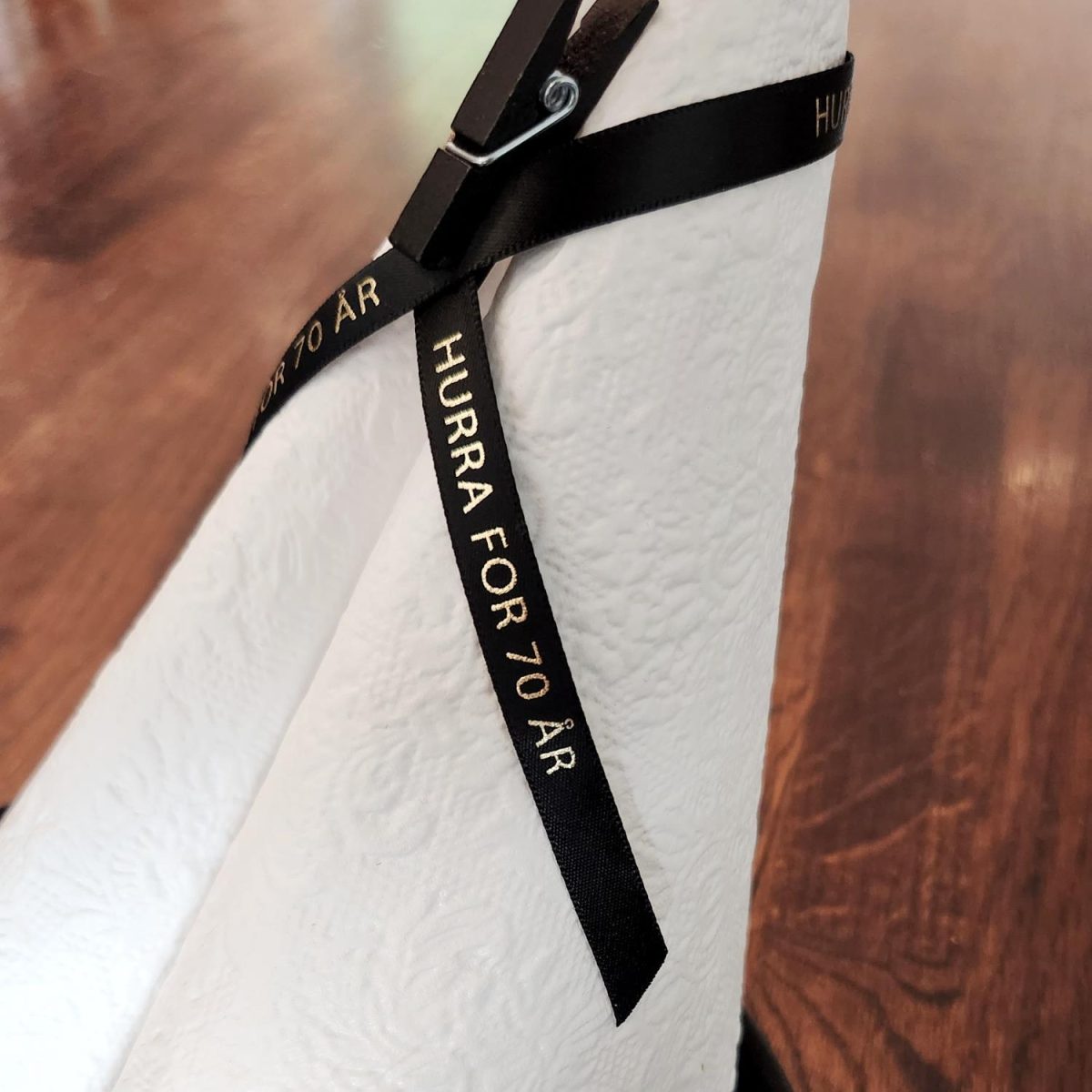 Tips: skal du bruke pyntebåndet rundt servietter anbefaler vi å bruke ca 53cm lengder. Da vil en pakke med 10 m være nok til 18 servietter.