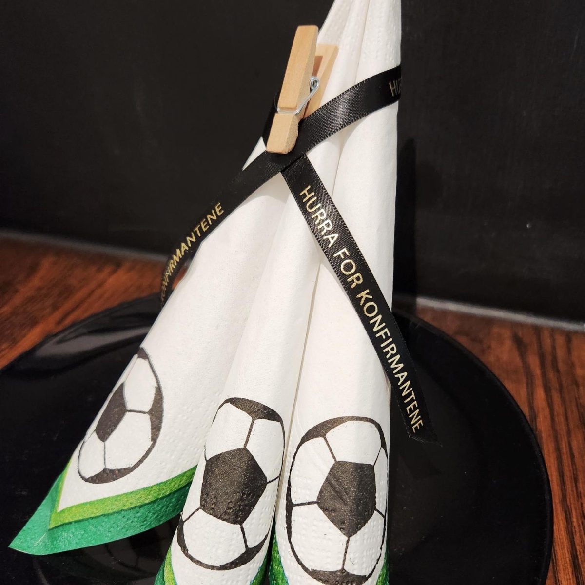 Tips: skal du bruke pyntebåndet rundt servietter anbefaler vi å bruke ca 53cm lengder. Da vil en pakke med 10 m være nok til 18 servietter.